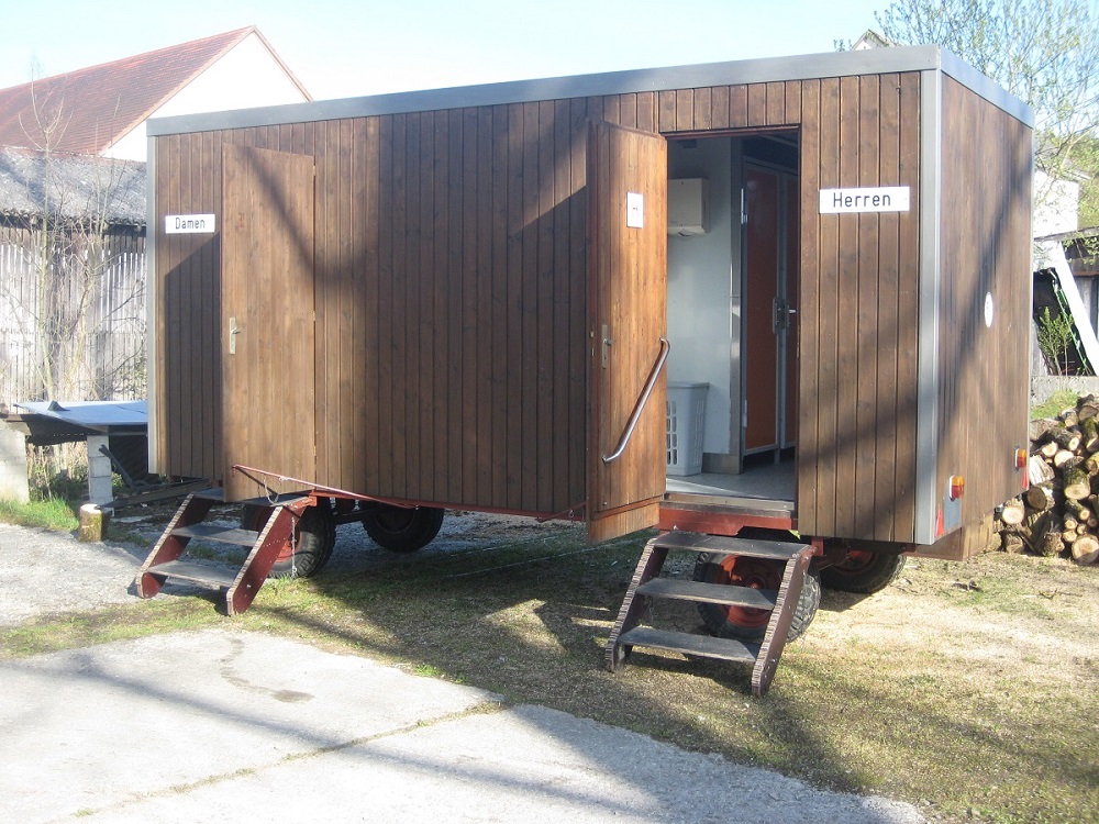Der Toilettenwagen des Musikvereins Fischbach kann gemietet werden.